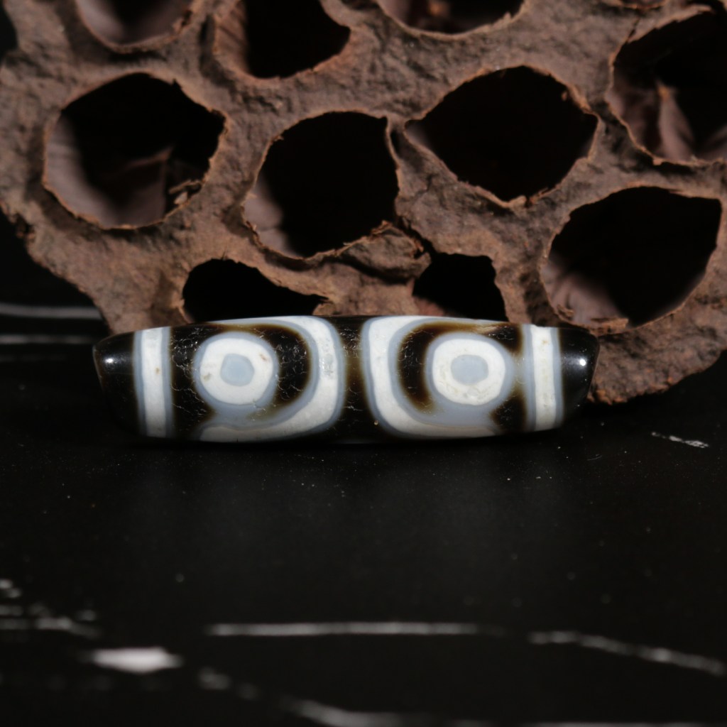 Dzi 3 Mắt tượng trưng 3 ước nguyện của con người : hạnh phúc, danh dự và tuổi thọ. Là biểu tượng của Hoàng Thần Tài (Dzambala) vị bồ tát từ bi, ban phúc lành về tài lộc của cải. Dzi 3 mắt đại biểu cho sự chuyển hóa thân tâm trên con đường tu tập, đi từ Tam độc (Tham, Sân, Si) tới Tam học (Giới, Định Tuệ).