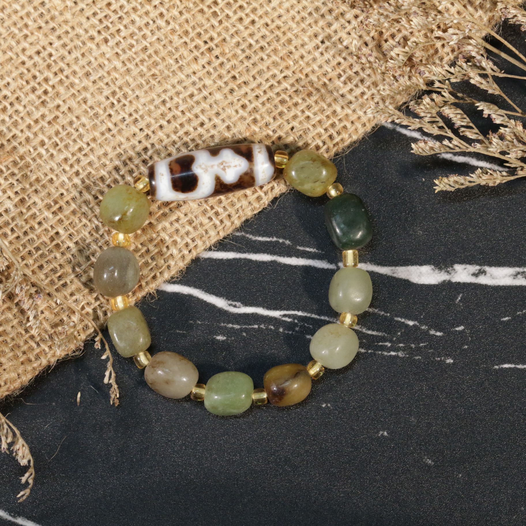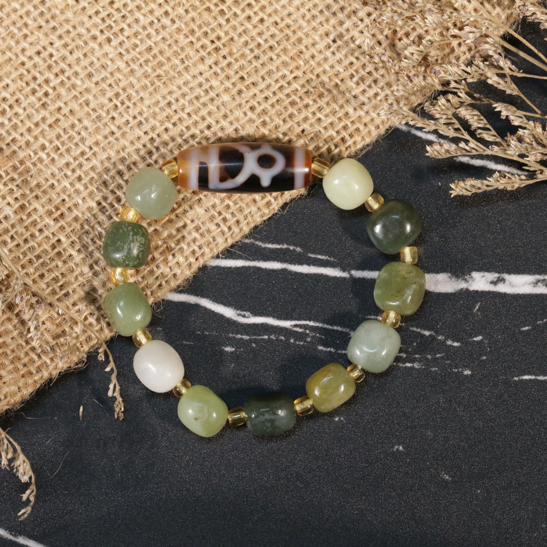 Vòng Tay Dzi Bảo Bình Mix Ngọc Hòa Điền